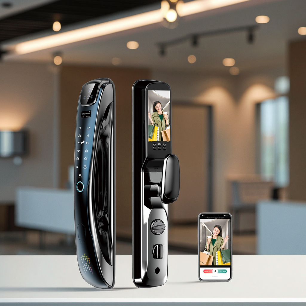 Makayuron Smart Lock,Multiple Unlocking Methods,Tuya Smart Lock,Three biometric features,Dual battery, 3D face recognition 6068 mortise,Class C lock cylinder (M03pro, Bright)