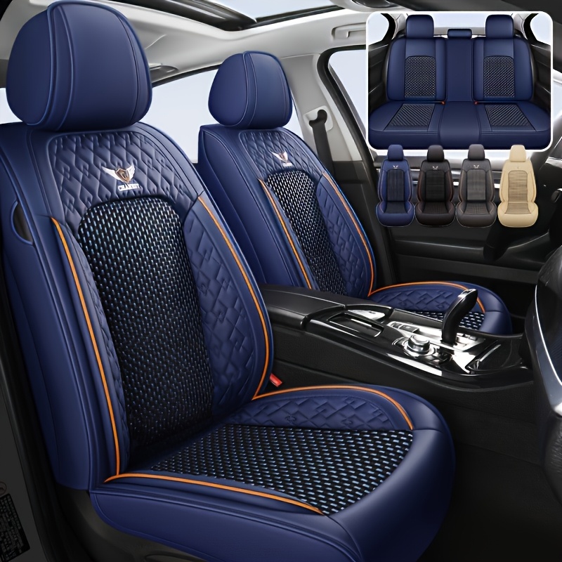 5-Seat Car Seat Cover Set, Ice Fabric + PU Material, Suitable for All Seasons, Sponge Filling, Easy to Maintain, Full Protection