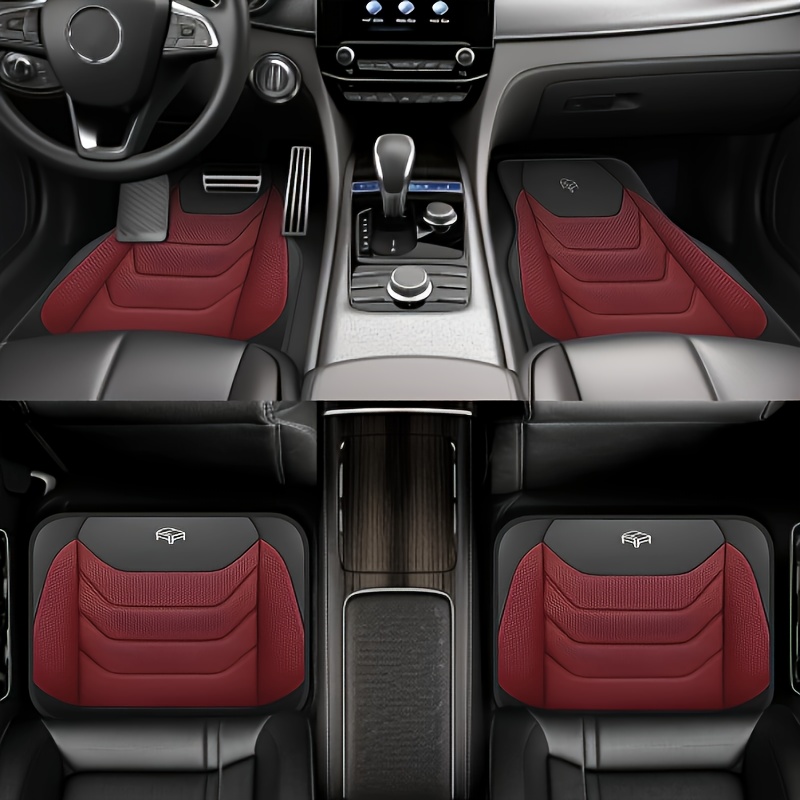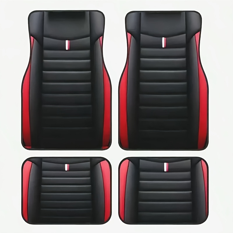 4pcs Universal Car Floor Mat Set, 3D Red and Black Design, Polyester Fiber, Anti-Slip, Absorbent, Easy to Clean, Fits All Driving Positions