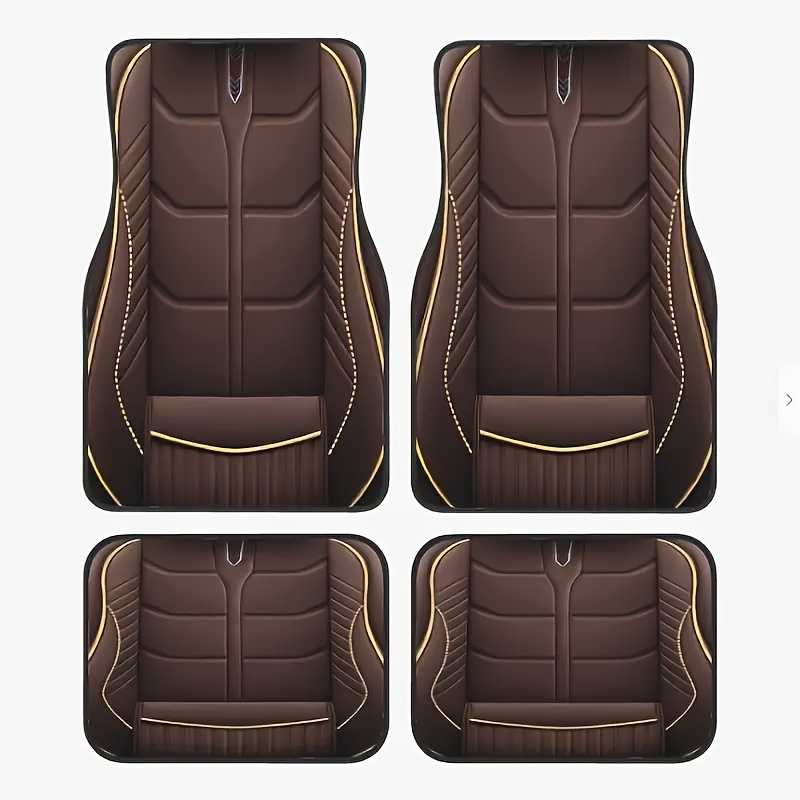 4pcs Car Floor Mats, Absorbent & Non-Slip, Stylish Brown & Golden Print Interior Protection for Cars, Vans, SUVs – All-Season Use, Perfect Gift for Men and Women, Floor Mats for Vehicles