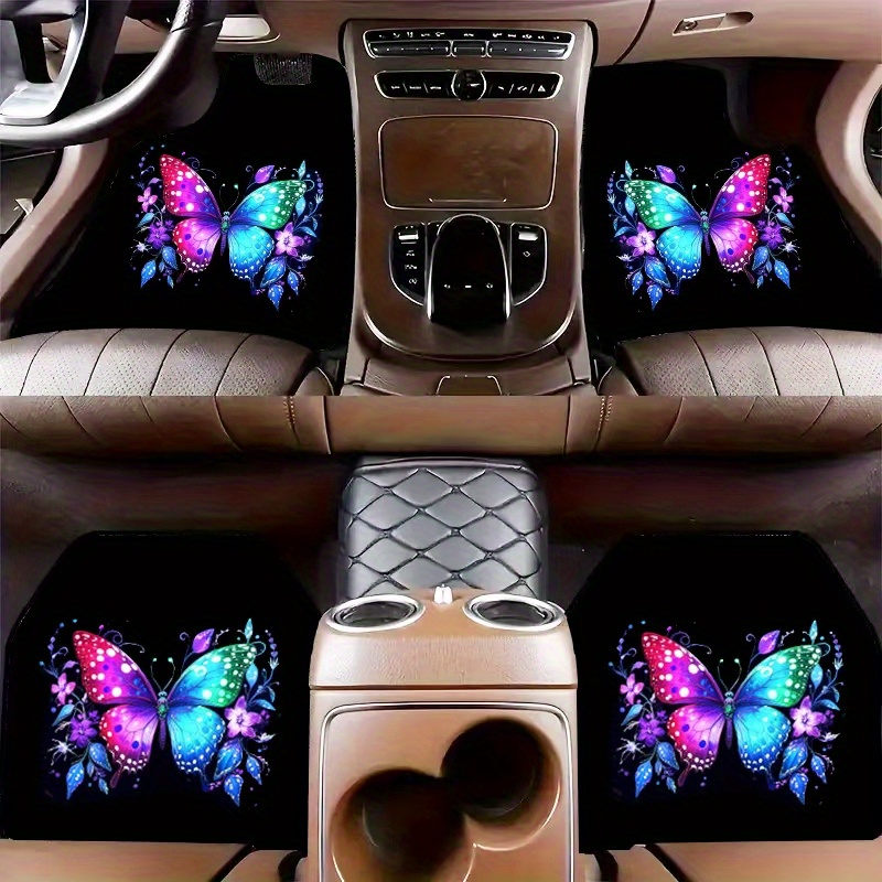 4pcs Colorful Butterfly Pattern Car Mats – Durable and Easy to Clean – Geometric Design – Suitable for Most Cars, SUVs, and Trucks, Interior Accessories, Automotive Protection, Stylish Floor Liners, Highquality Liners, Longlasting Material, Auto Floor Protection, Vehicle Enthusiasts, Truck Owners