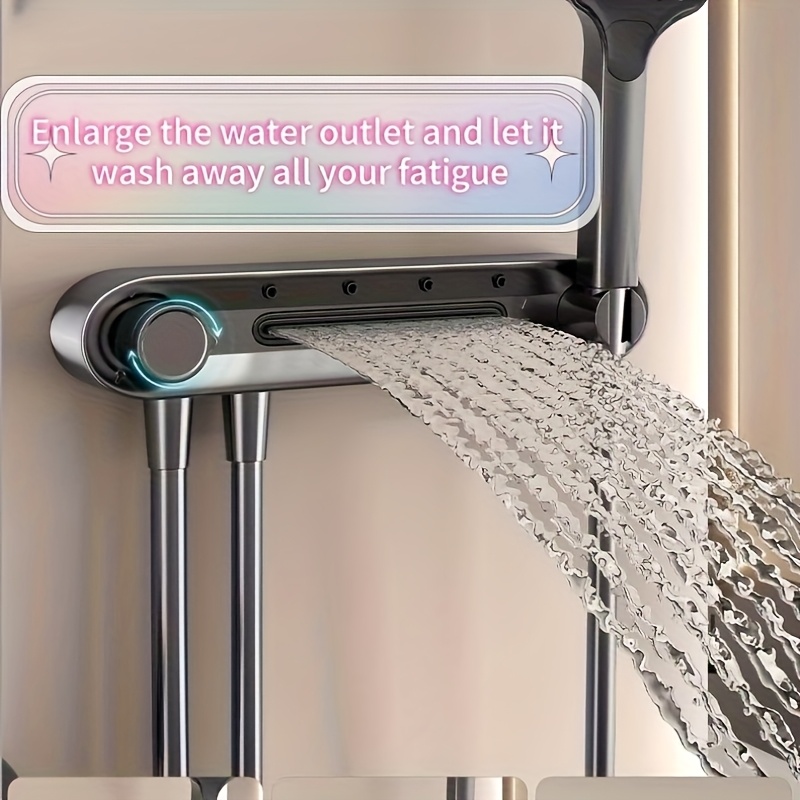 Wall-Mounted Split Shower Head with 3 Adjustable Arms – Modern Bathroom Upgrade in Sleek Black Rectangular Design, No Electricity Required