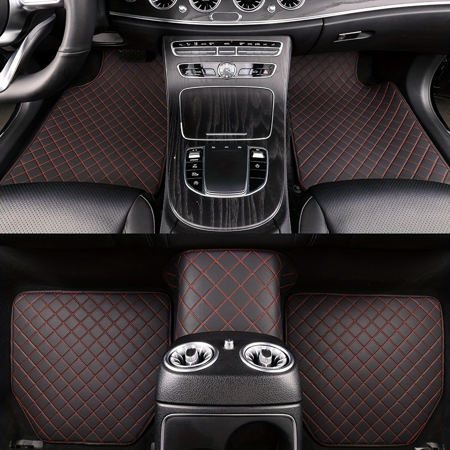 4pcs Universal Car Floor Mat Set, 3D Red and Black Design, Polyester Fiber, Anti-Slip, Absorbent, Easy to Clean, Fits All Driving Positions