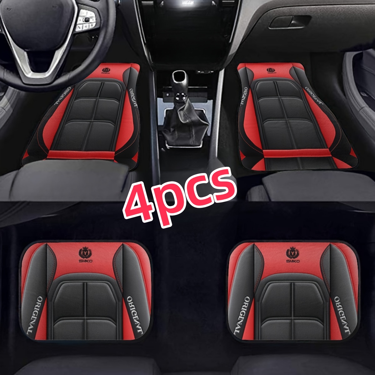 5pcs Luxury Car Floor Mats – All-Season Use, Easy to Clean, Durable Polyester, Universal Fit for Sedans, Trucks, and SUVs, Stylish Black & Red Diamond Pattern, Allseason Floor Mats | Diamond Pattern Mats | Durable Floor Mats