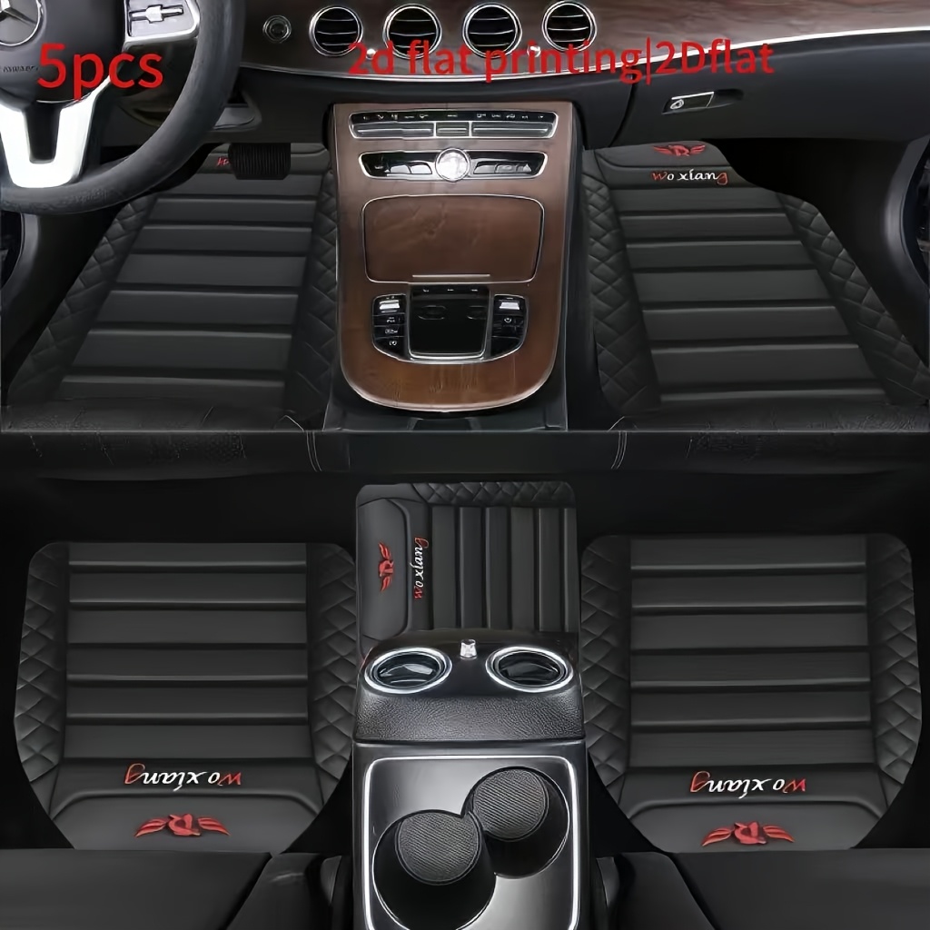 5pcs All-Season Car Floor Mats with Non-Slip Surface, Heavy-Duty Easy-to-Clean Design, Full Coverage for Driver/Passenger/Rear Seats & Trunk, Durable Car Interior Accessories (Black/Red)
