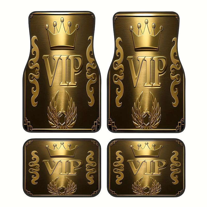 4pcs Car Floor Mats, Absorbent & Non-Slip, Stylish Brown & Golden Print Interior Protection for Cars, Vans, SUVs – All-Season Use, Perfect Gift for Men and Women, Floor Mats for Vehicles